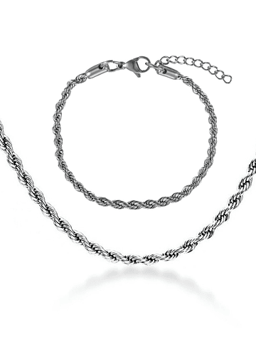 Set Cadena + Pulsera Gargantilla Cuencas De Cuarzo Blanco Unisex
